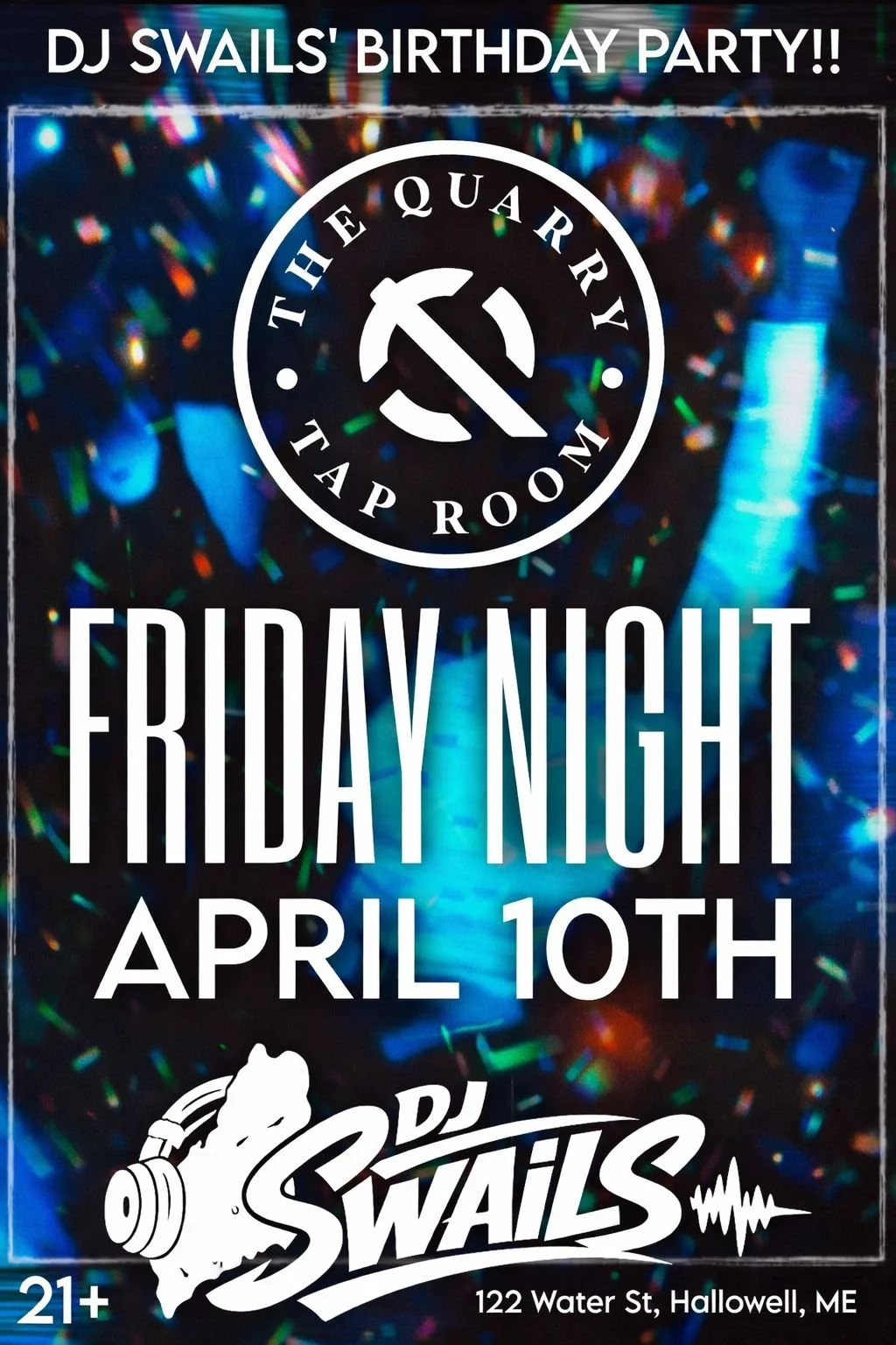 DJ Swails at The Quarry Tap Room Friday, April 10, 2026 9:30 PM Saturday, April 11, 2026 12:30 AM The Quarry Tap Room 122 Water Street Hallowell, ME, 04347 United States (map) Google Calendar ICS Here is the Latest fromThe Quarry Tap Room The Quarry Tap Room