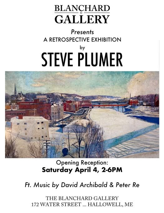 Steve Plumer opening reception at The Blanchard Gallery Saturday, April 4, 2026 2:00 PM 4:00 PM The Blanchard Gallery 172 Water Street, Hallowell, (map) Google Calendar ICS The latest posts fromThe Blanchard Gallery The Blanchard Gallery